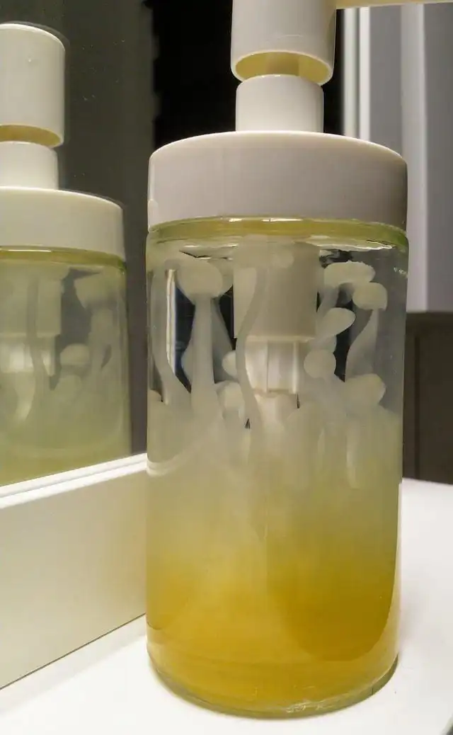 Вот что происходит, когда в ёмкость доливают мыло другого цвета