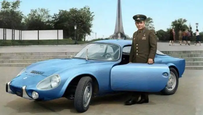 8. Юрий Гагарин со своим подарком от французов - автомобилем. «Matra», СССР 1960-е