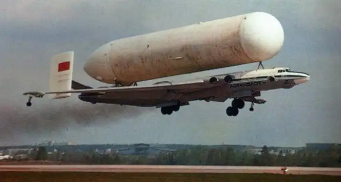 37. ВМ-Т «Атлант» перевозит топливный бак для ракетоносителя «Энергия», СССР, 1981 год