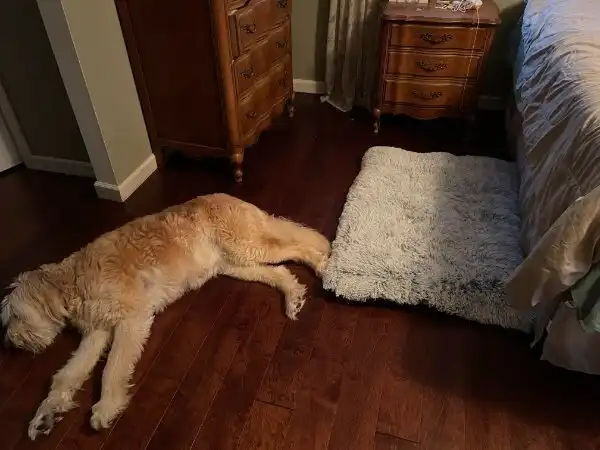 "Наш пес любит спать возле кровати. Купила ему мягкий коврик. А он не оценил"