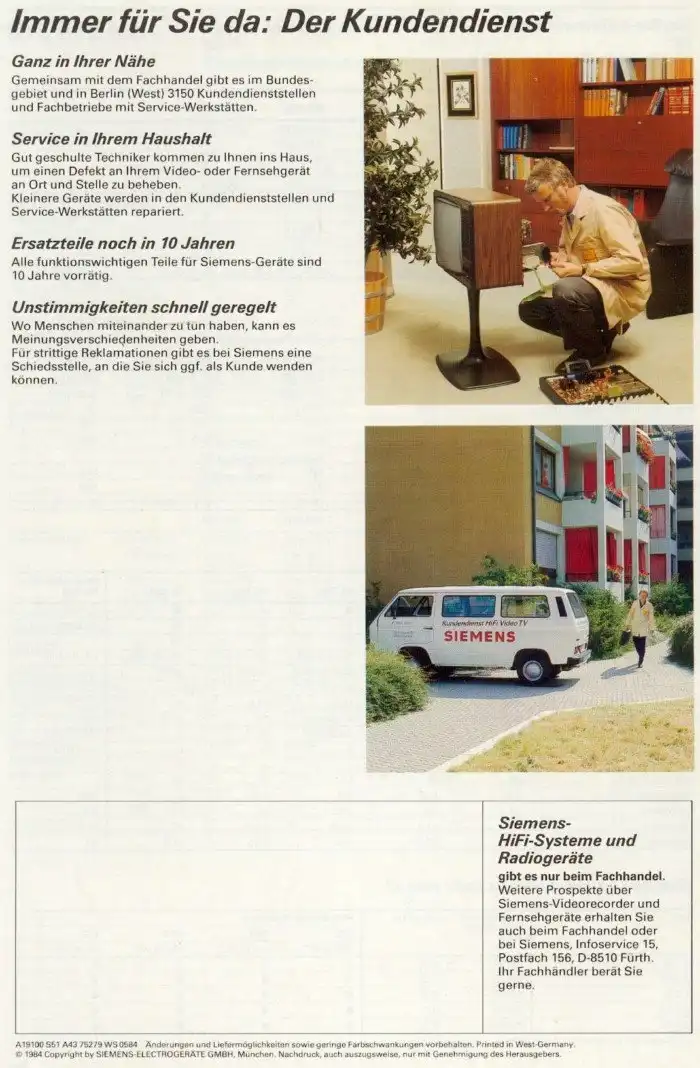 Между тем вклад этой фирмы в развитие бытовой электроники огромен. Очень любопытно было полистать каталог бытовой аппаратуры SIEMENS- это просто зеркало эпохи. На все модные веяния фирма отвечала новыми разработками, но всегда с неизменным немецким почерком: сдержанность, практичность и неизменное качество.