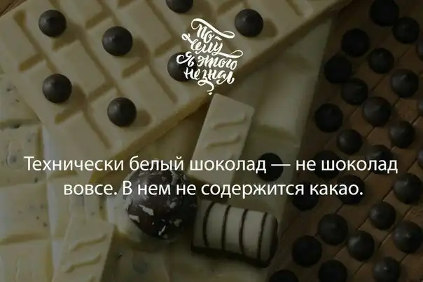 Технически, для изготовления белого шоколада используются те же бобы, как и для любого другого, но только масло какао, получаемое в результате отжима оных. Белый шоколад можно называть шоколадом, если наряду с другими требованиями, он содержит не менее 20 процентов какао-масла.