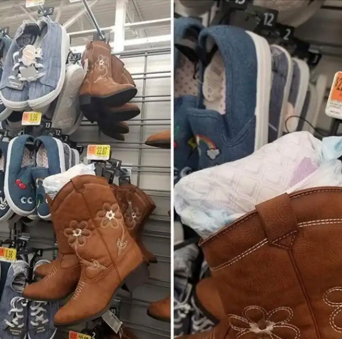 Какая-то мамаша не нашла ничего лучше, чем оставить памперс в магазине обуви