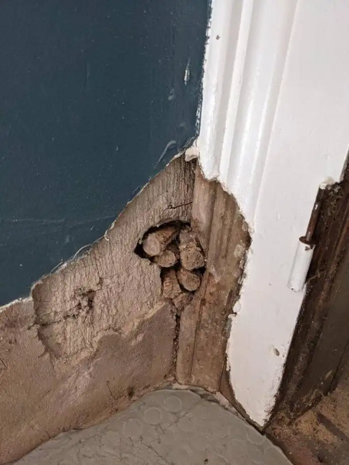 «Смешные находки в моем каменном доме 1870-х годов. Мы всегда думали, что большая выпуклость в углу комнаты - это неровный кусок камня. Попытались его удалить - и оказалось, что это дыра, забитая кукурузными початками»