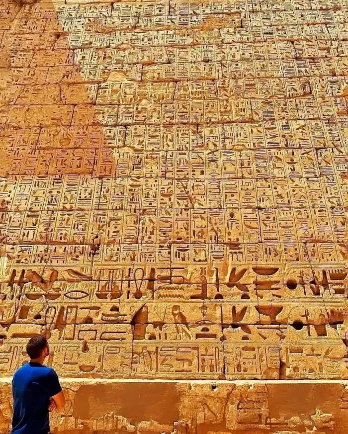 Иероглифы на стене храма Мединет Хабу, Луксор, Египет