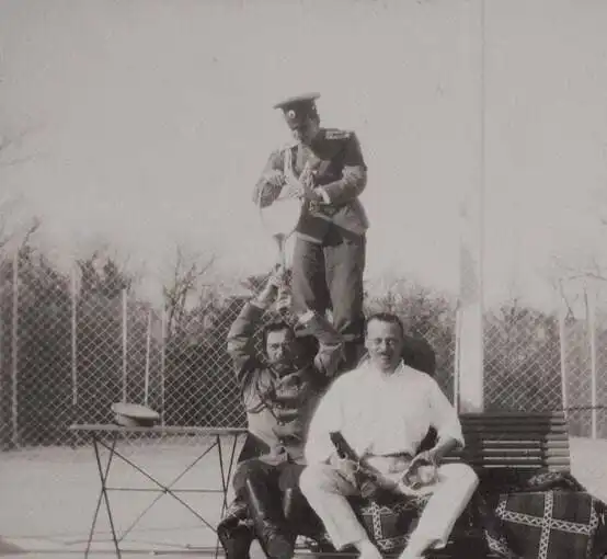 Николай II с Великим Князем Дмитрием Павловичем и Эрнстом Людвигом, великим герцогом Гессенским, в Крыму