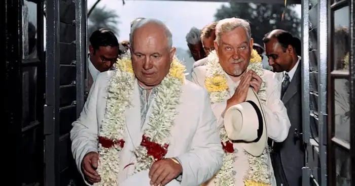 Никита Хрущёв и Николай Булганин в Индии, 1955 год