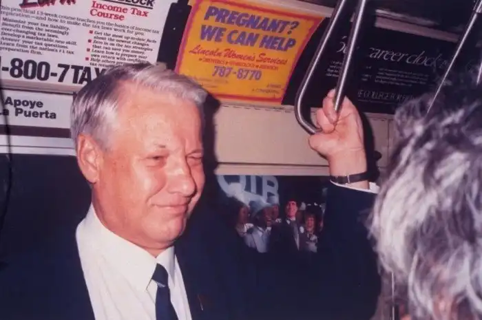 Народный депутат и член Верховного совета СССР Борис Ельцин в нью-йоркском метро, 1989 год