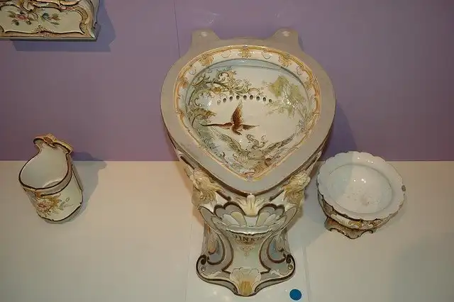 Первый унитаз – сливную ночную вазу – стал воплощением идеи Джона Харрингтона, он был не только изобретателем, но и хорошим поэтом. Специально для королевы Елизаветы по его чертежам была создана конструкция, которая состояла из собственно ночной вазы, бачка с водой, подвешенного на возвышении, и емкости для сбора нечистот. Это произошло в XVI веке.