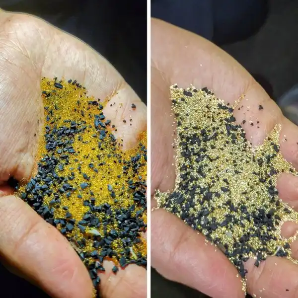 Ответ: желтые песчинки похожи на деионизационную смолу, которая используется для очистки воды. А черные крошки, скорее всего, уголь, который применяется с той же целью