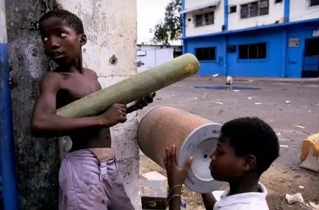 Дети играют в боевиков во время уличного боя, 1990–е годы, Либерия.