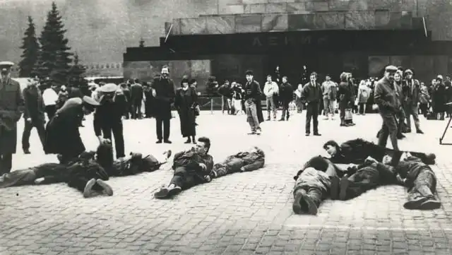Активисты движения «Э.Т.И.» на акции «Э.Т.И.-текст», известной в народе как «Х*й на Красной площади», Москва, 1991 год.