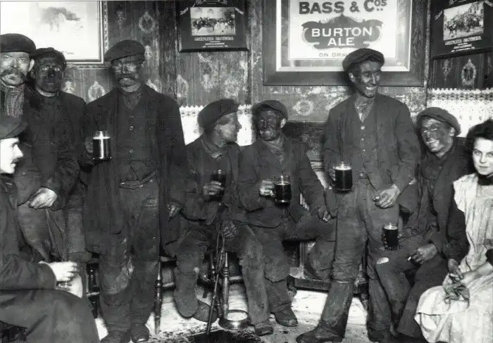 3. Валлийские угольщики угощаются пивом после смены. около 1912 г.