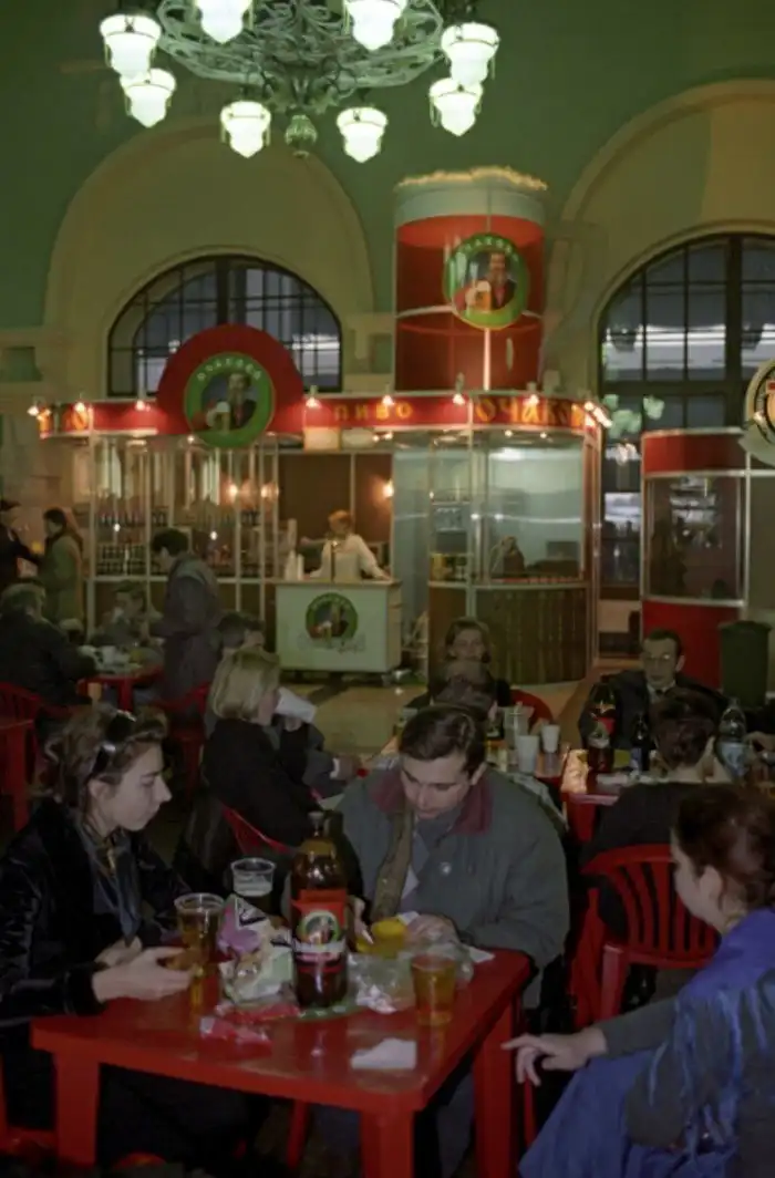 Распитие очаковского пива в одноименном кафе на вокзале, Москва, 1998 год.