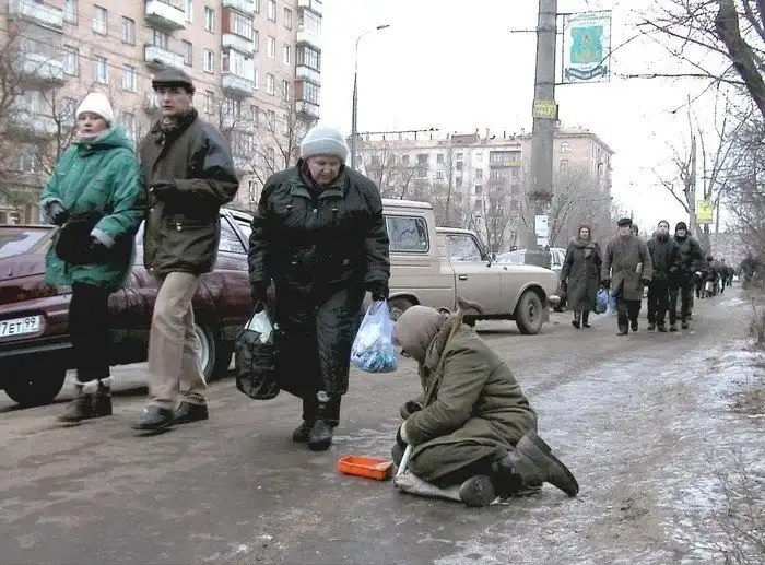 “Сегодня в школе можно купить все: туфли, одежду, презервативы. Цены обычные, рыночные. Из 36 пятиклассников одной московской школы в столовой едят только cемеро. Из них шестеро — «бесплатники» (государство платит за них 15 рублей в день), и только одна девочка приносит деньги из дома. Некоторые школьники продают свои обеды голодным товарищам по рублю.”