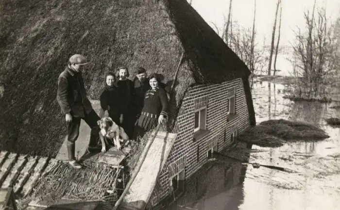 11. Голландская семья спасается на своей крыше во время большого наводнения в Северном море в 1953 году