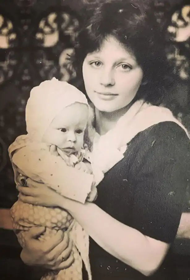 34. Космонавт и актриса Юлия Пересильд на руках у мамы