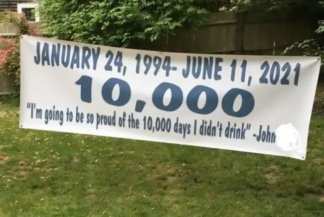"Мой муж не пьет 10 000 дней. В честь этого мы устроили для него грандиозную безалкогольную вечеринку. Я горжусь его силой воли и обожаю его"