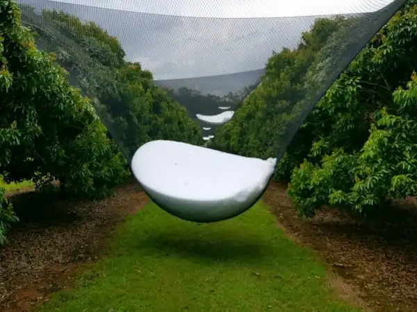 Сфотографировал хорошо подстриженные деревья и кусты в тумане, создающие композицию в стиле Мондриана