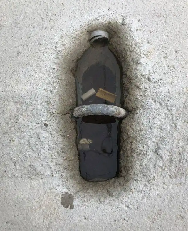 Это не упавшая бутылка, а просто небольшая яма в бетоне
