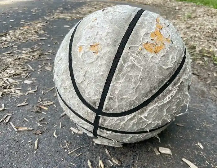 9. "Баскетбольный мяч, который живет в местном парке и, как ни странно, до сих пор упругий"