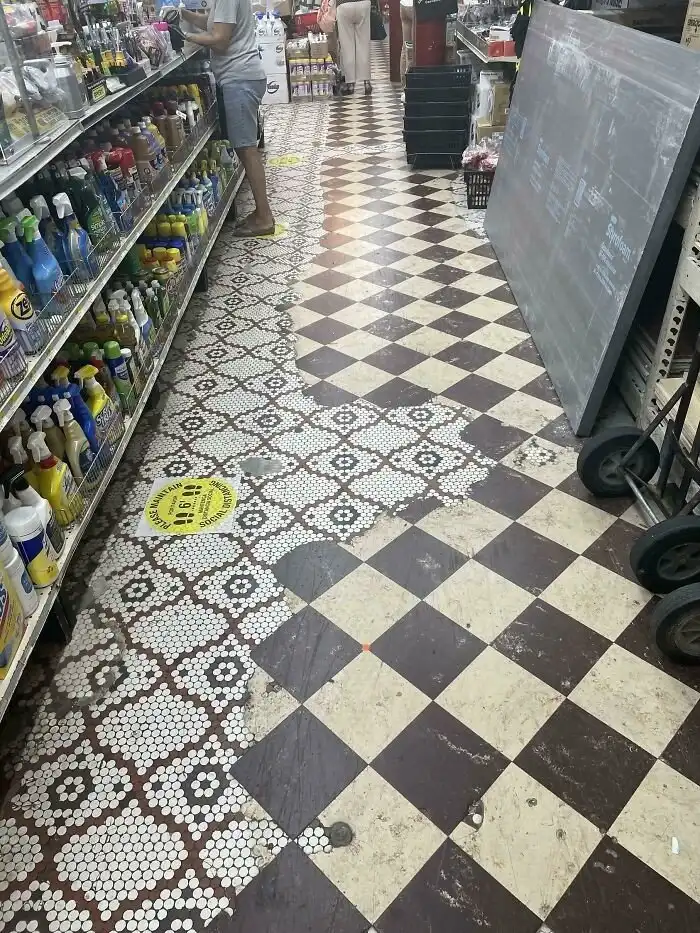 17. "По тому, где стерся линолеум, обнажив оригинальную плитку, можно проследить, где люди обычно выстраиваются в магазине"