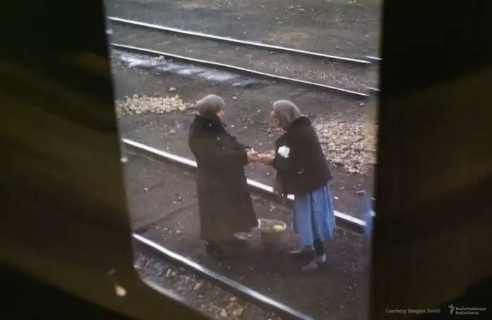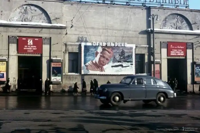 23. Редкие цветные фото похорон Сталина в 1953 году. Сфотографировано из здания старого посольства США