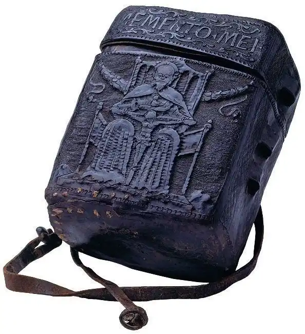 8. Сумка для книг из средневековой Италии. Похоже на рюкзак школьника, который увлекается хэви-металом