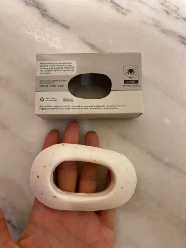 Я впервые увидела мыло такой формы. Сначала решила, что это просто дизайн, но потом мне сказали, что мыло такой формы помогает сократить количество отходов, поскольку от него не остаётся обмылка.
