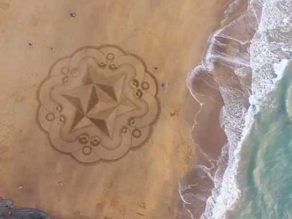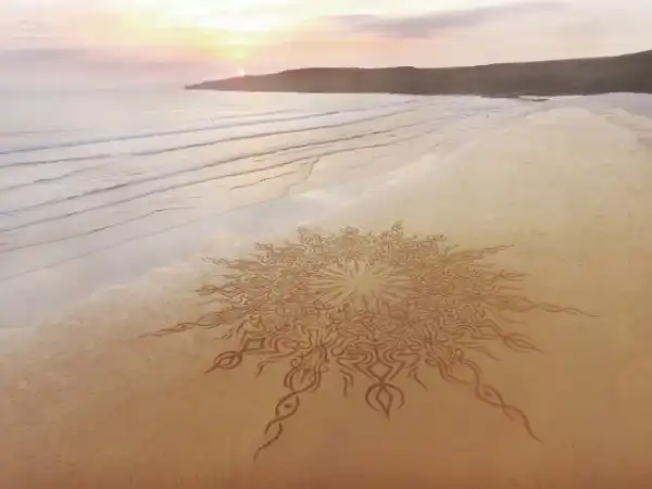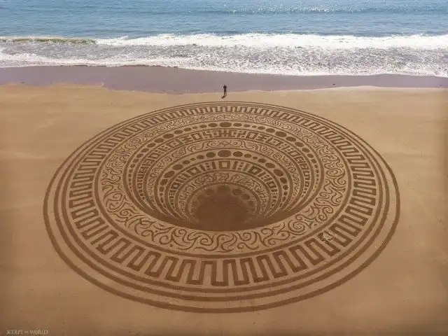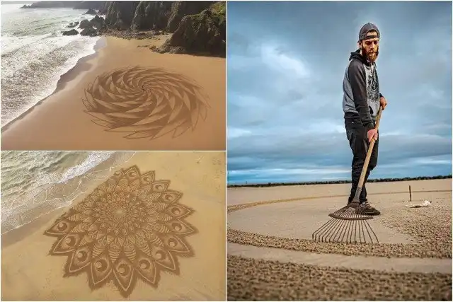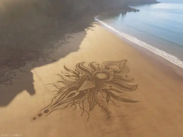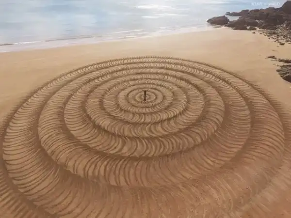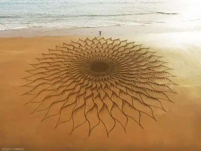 То, чего пляжному искусству Джона Формана (Jon Foreman) может не хватать долговечности, оно, несомненно, компенсирует вау-эффектом. Художник тратит до четырех часов на создание завораживающих узоров на песке — некоторые из них получают экзотические латинские названия — используя только садовые грабли и палку.