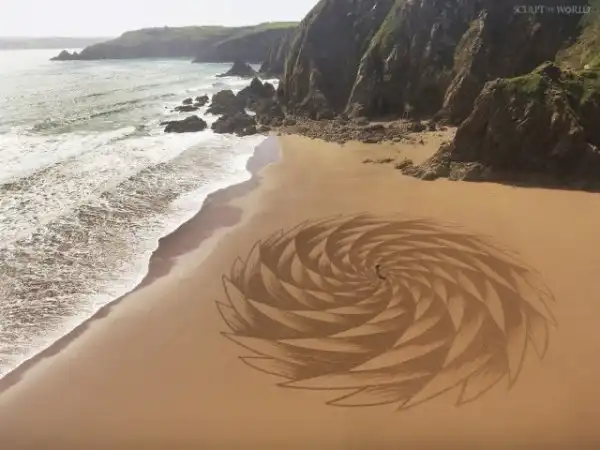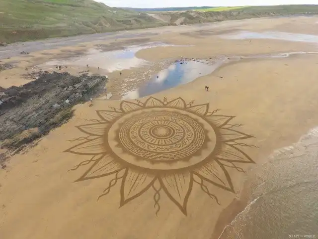 29-летний Джон, чье полотно украшает берег недалеко от его дома в Милфорд-Хейвене, Пембрукшир, говорит, что его искусство, восстановленное природой в течение нескольких часов после его создания, добавляет красоты впечатлениям.