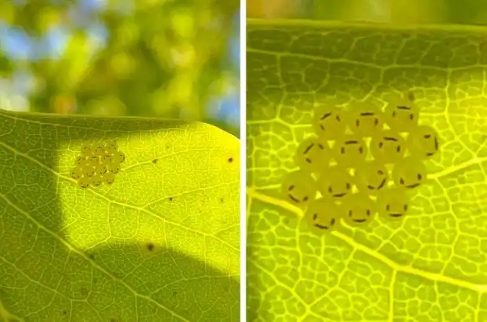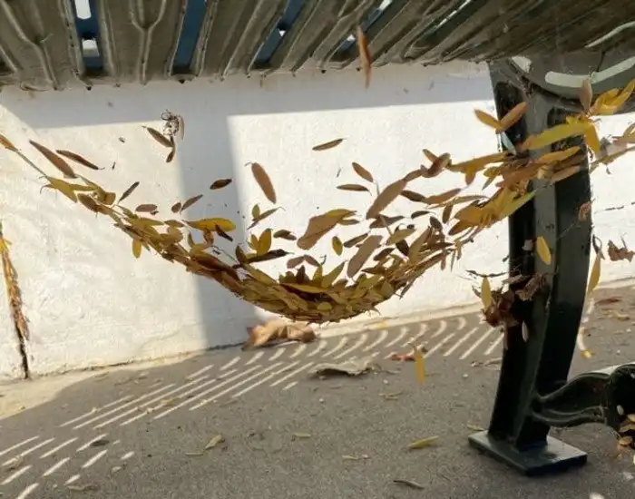 На самом деле листья просто прилипли к «гамачку» из паутины