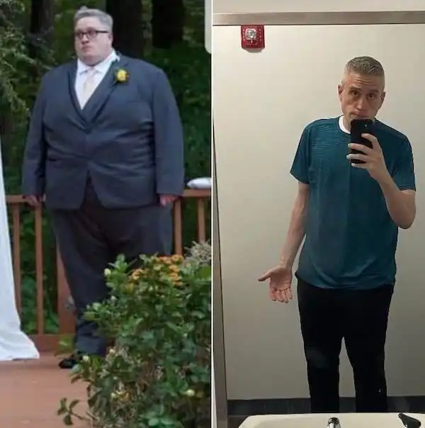 18. "Фото слева было сделано ровно 3 года назад, я тогда весил примерно 270 килограмм. Сейчас я вешу 104".