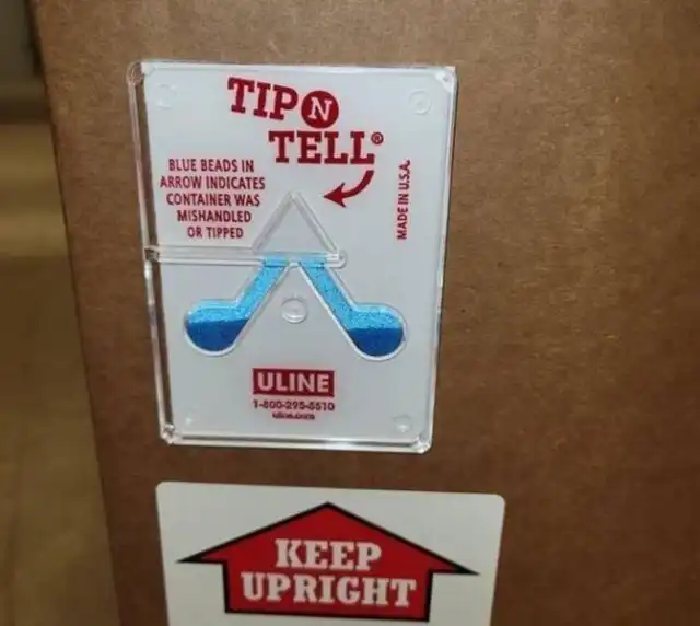Специальный стикер на коробке службы доставки - он позволяет узнать, ронял или тряс ли ее доставщик во время перевозки