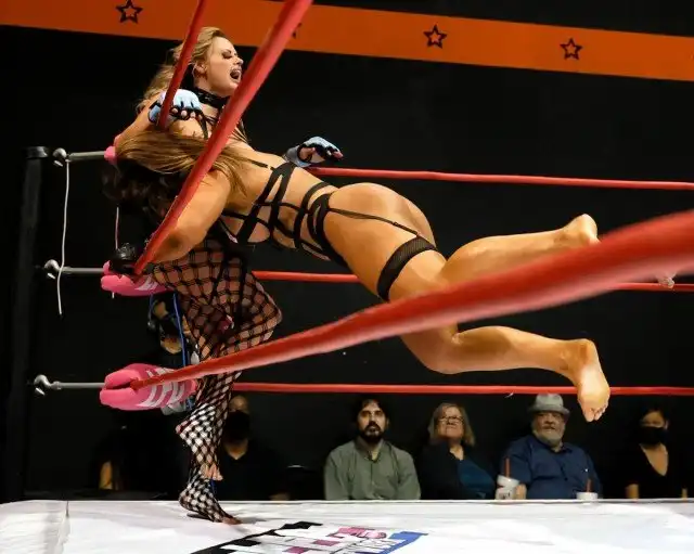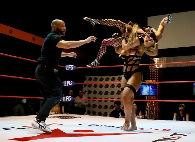 Четырнадцать женщин разделись до кружевного белья, наклеек на соски и сетчатых колготок в этот Хэллоуин, чтобы сразиться на ринге во время ежегодного чемпионата по борьбе в нижним бельем Lingerie Fighting Championship.
