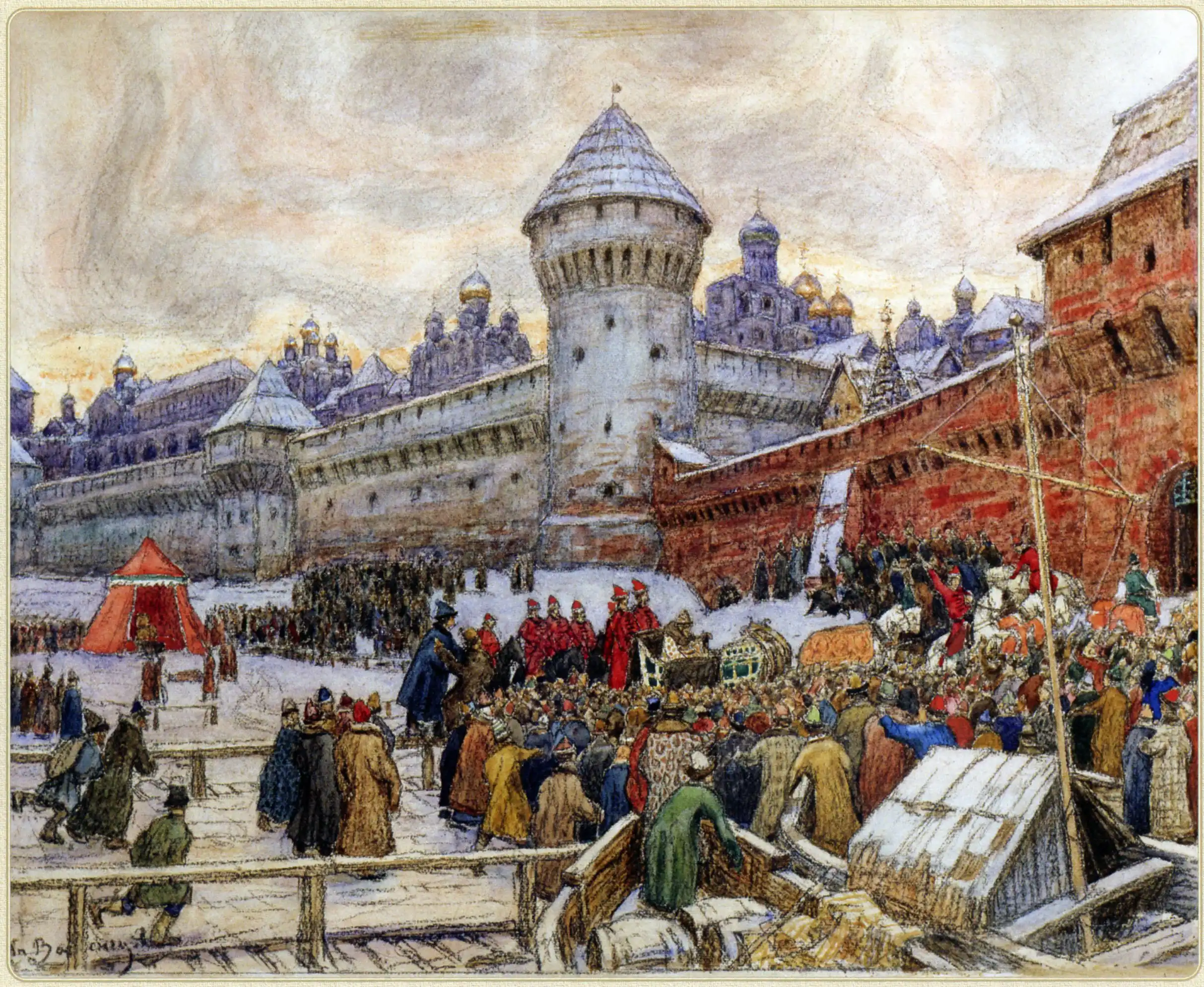 Гонцы. Ранним утром в Кремле. Начало XVII века. 1913