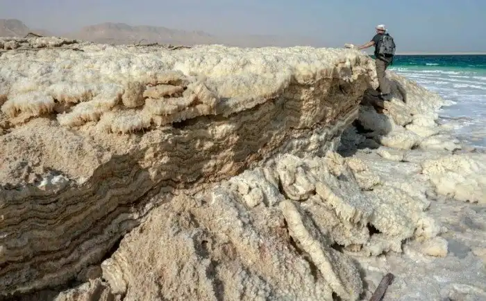 Изваяния из кристаллов соли на берегу: когда-то они были под водой