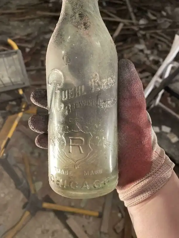 13. "Во время ремонта в спальне нашел в стене старую бутылку из пивоварни Ruehl Bros. в Чикаго. Гугл говорит, что пивоварня существовала с 1915 по 1926 год".