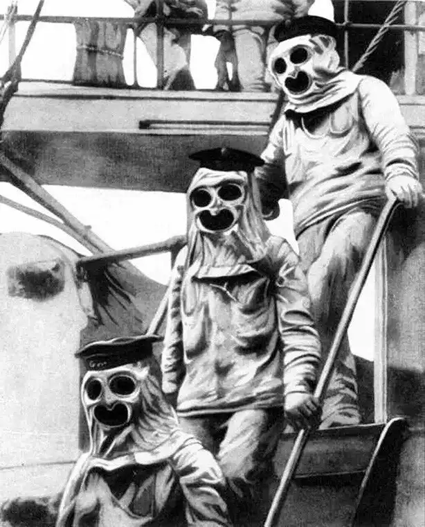 5. Веселые австрийские морячки в костюмах химзащиты, 1916 год