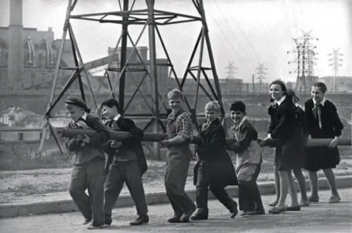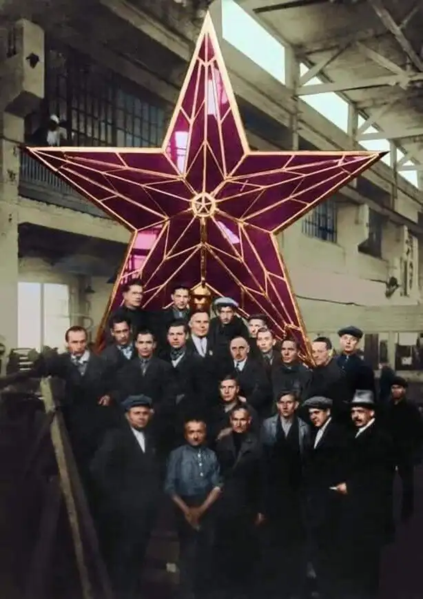 7. 2 ноября 1937 года на башнях Московского Кремля зажглись рубиновые звезды. На фото: Рабочие, участвовавшие в создании рубиновых звёзд Кремля. 1937 год.