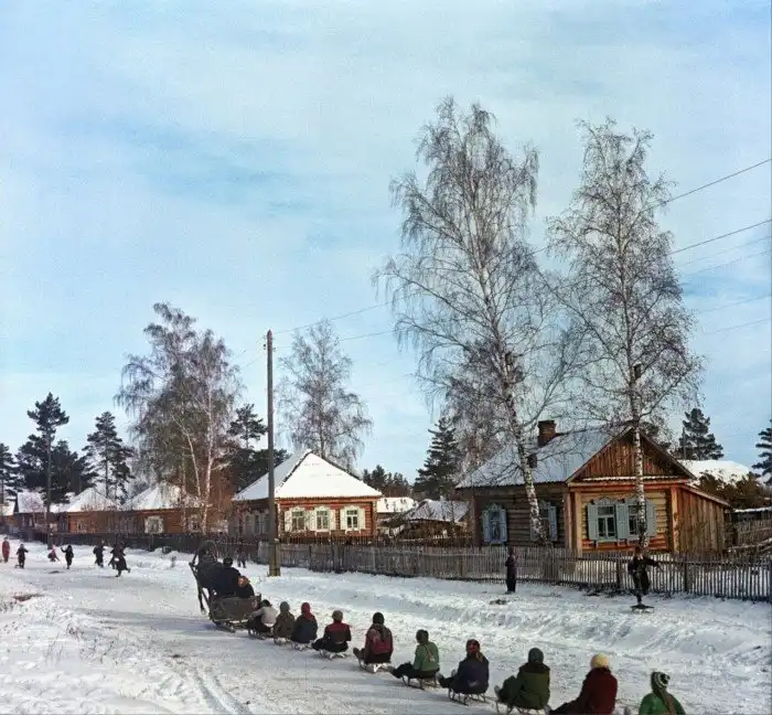 37. «Огонёк» 1962. В селе совхоза «Гутовский» в воскресные дни устраивают массовые катания на салазках. Начинкин М.