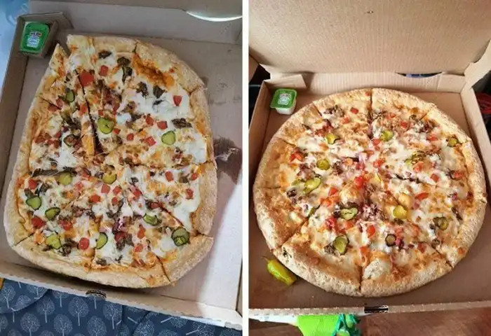 1. «Привезли сильно помятую пиццу. Написали им об этом отзыв и они подарили правильную пиццу в качестве извинений!»