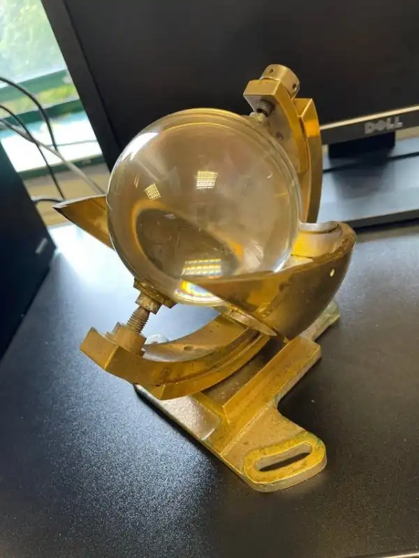 Ответ: это регистратор Кэмпбелла–Стокса или регистратор солнечного света. Работает это так: под шаром размещается специальная бумага со шкалой. По прожжённому на ней следу определяется интенсивность и продолжительность солнечного света.
