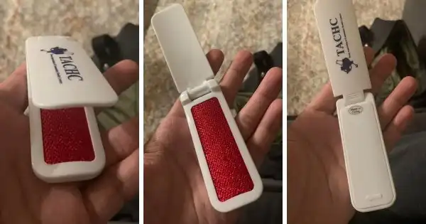 Пластиковая штука, она открывается, внутри плотная ткань, сзади стрелка. Понятия не имею, как это используется