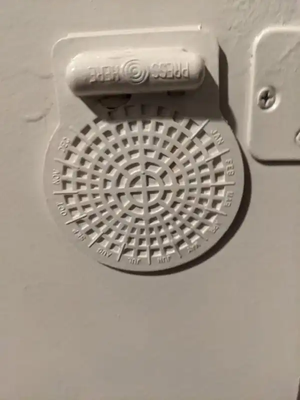 Найдено над кухонной раковиной, 10-13 см в диаметре, при нажатии на кнопку ничего не происходит