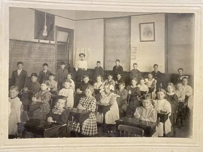 "Обнаружили этот снимок класса 1911 года в стене кухни. На фото написано: "Вивьен Гилберт, июнь 1911"