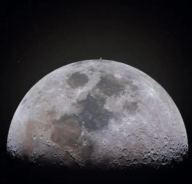 Луна и Сатурн выстроили практически в одну линию с Землей.
