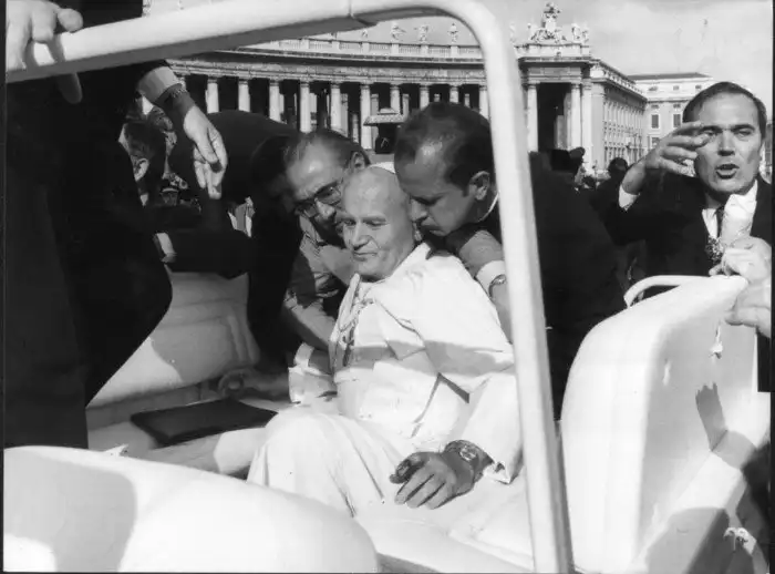 Папа Иоанн Павел II после покушения на площади Святого Петра в Ватикане в 1981 году