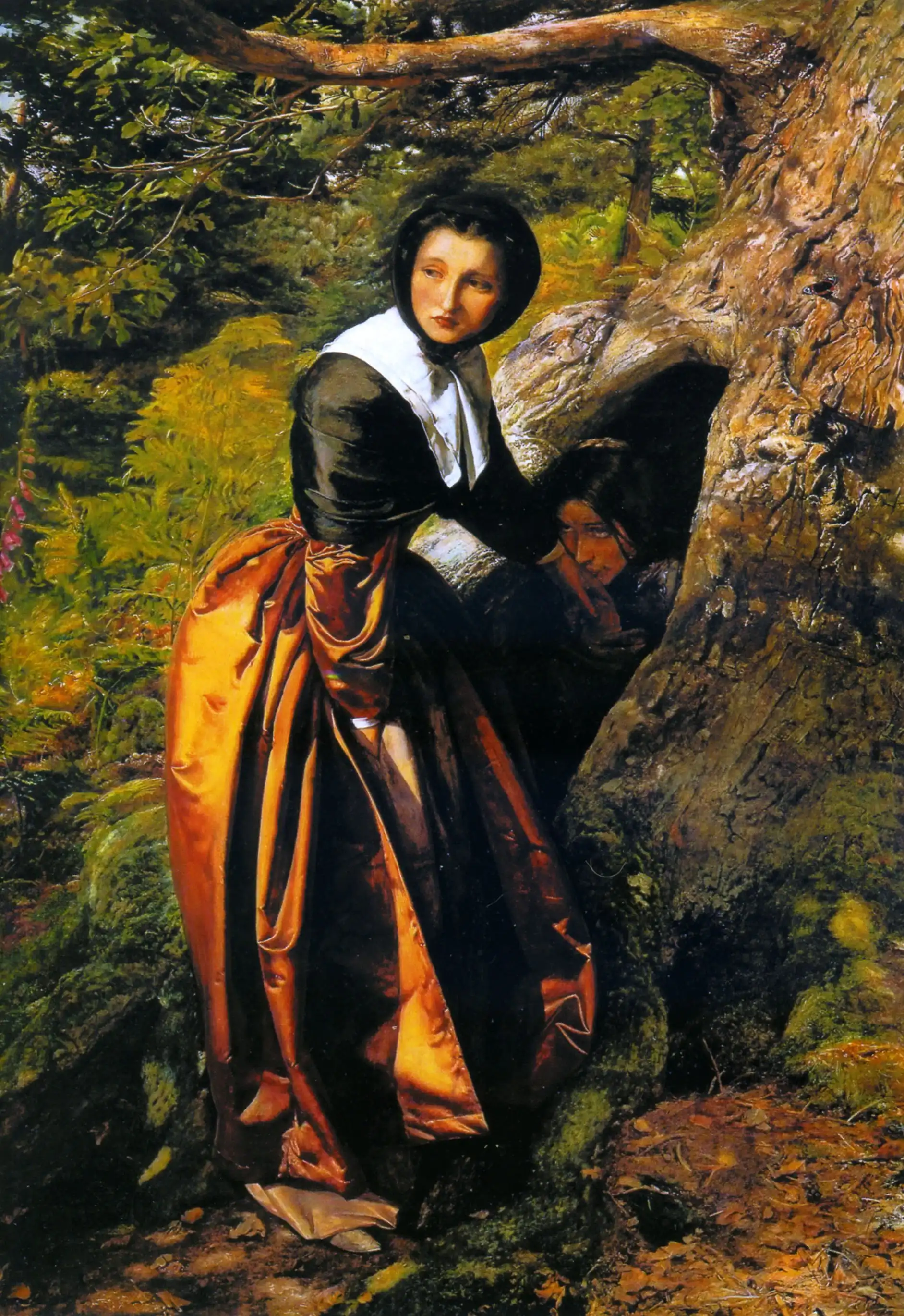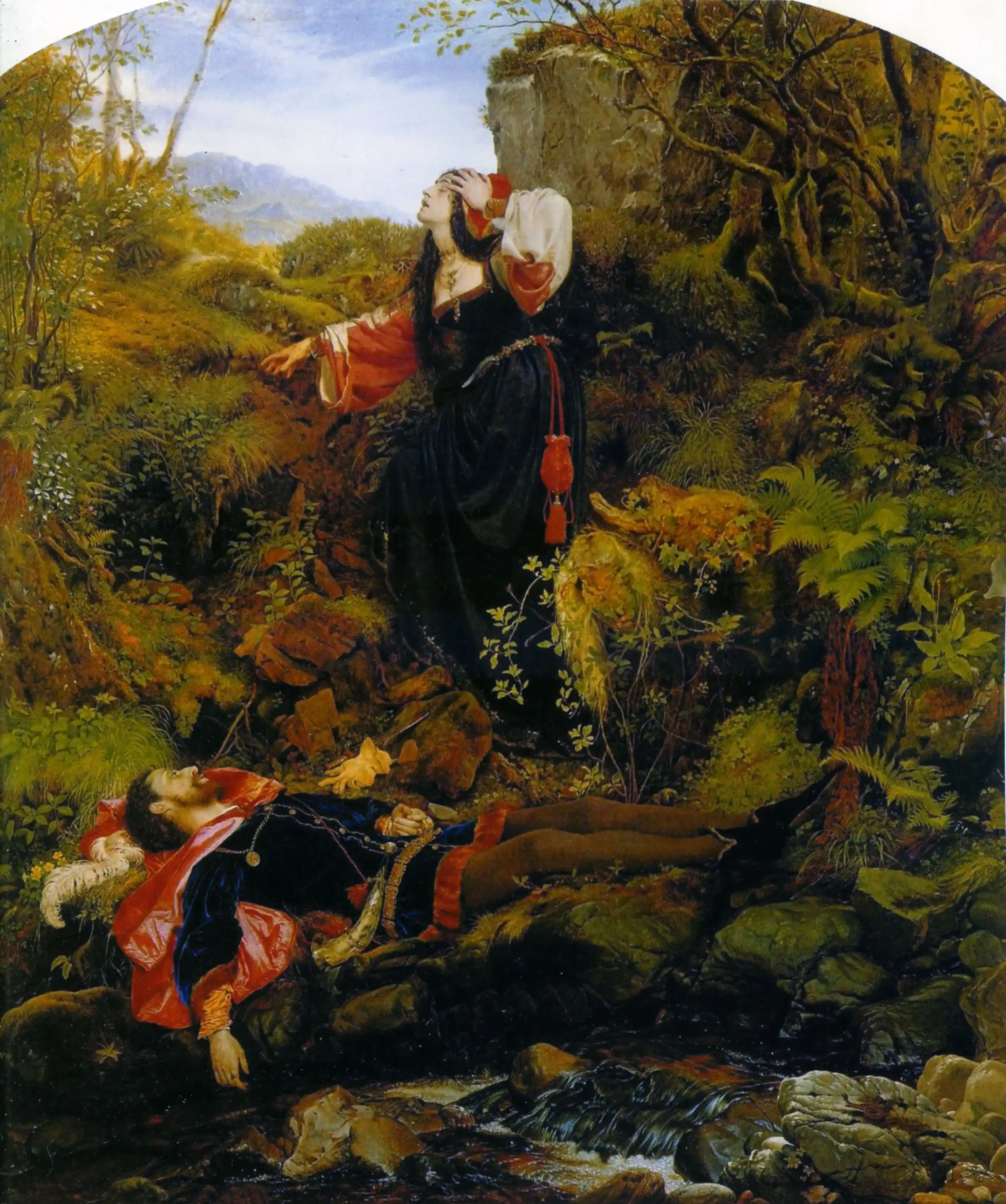 На картине мы видим кавалера-роялиста, ставшего жертвой нападения в лесу; серьёзно раненный, он брошен умирать. Его находят проходившие по лесу пуритане: женщина пытается помочь раненому, тогда как её спутник, недовольный, ревниво наблюдает за происходящим. Отчаянное положение кавалера очевидно из мертвенного выражения его лица, в то время как прекрасное, нежное лицо пуританки исполнено сострадания.