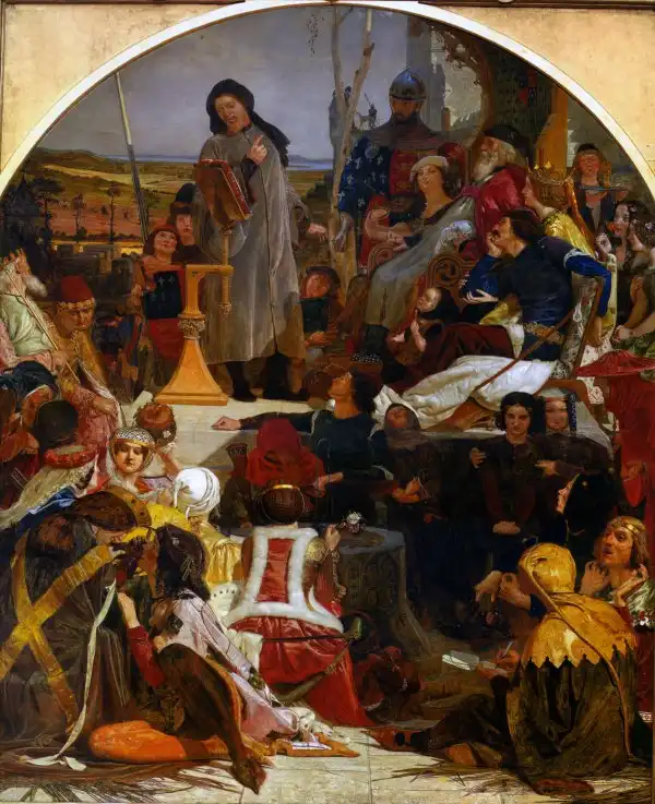 Чосер при дворе Эдуарда III (джеффри Чосер читает “Легенду о Констанце” Эдуарду III и его придворным во дворце Шин в день сорокапятилетия Чёрного принца). 1856-1868